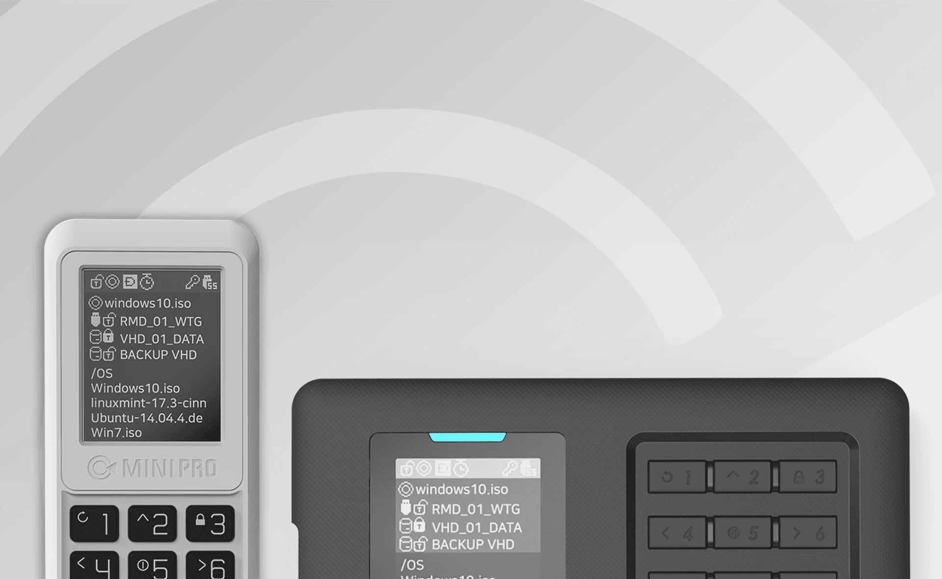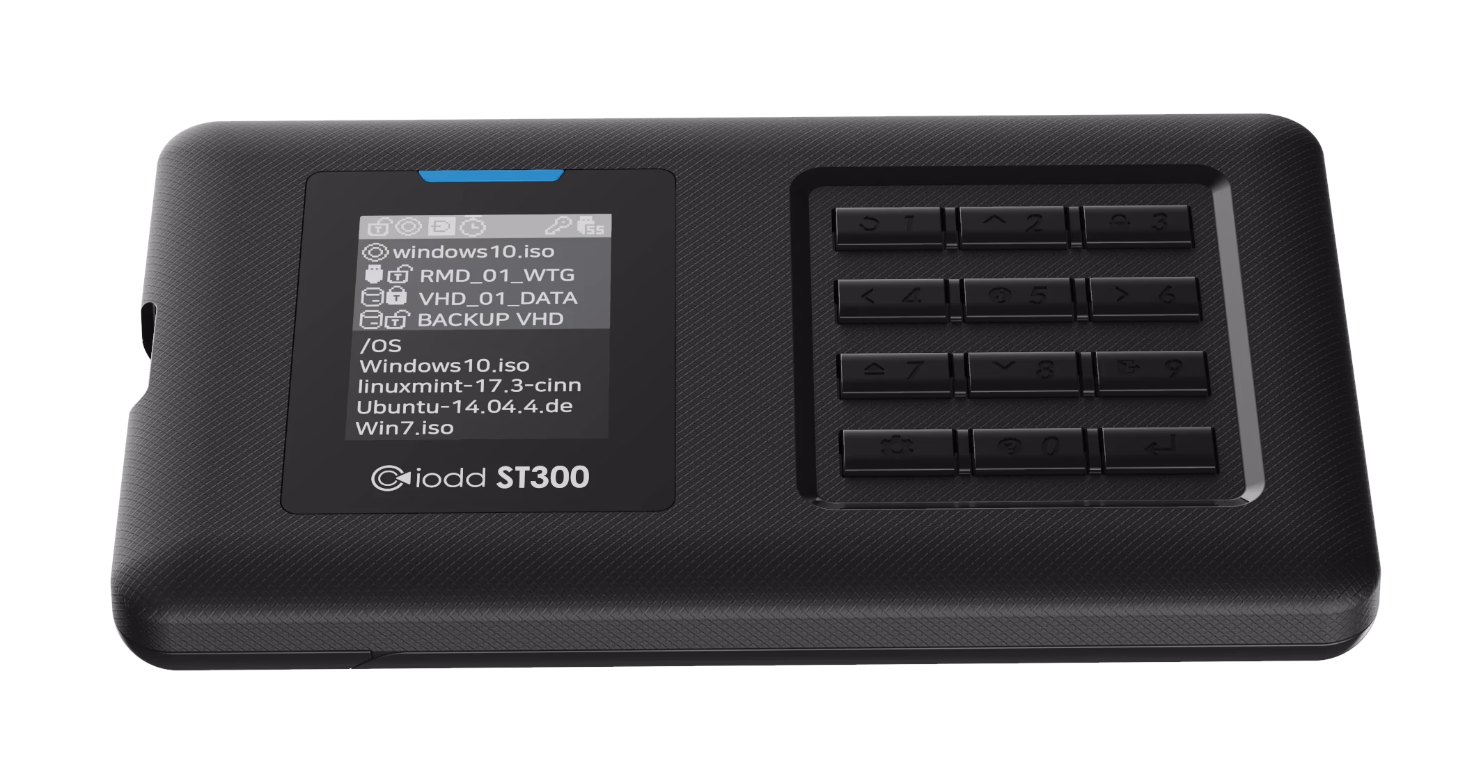 12개의 정밀한 택타일 키로 기기를 완벽하게 제어하세요. 연결 시 지정된 시작 키를 누르면 맞춤 기능이 원활하게 실행됩니다. 메뉴 탐색 없이 쓰기 보호 모드를 실행하여 데이터를 즉시 보호하세요.